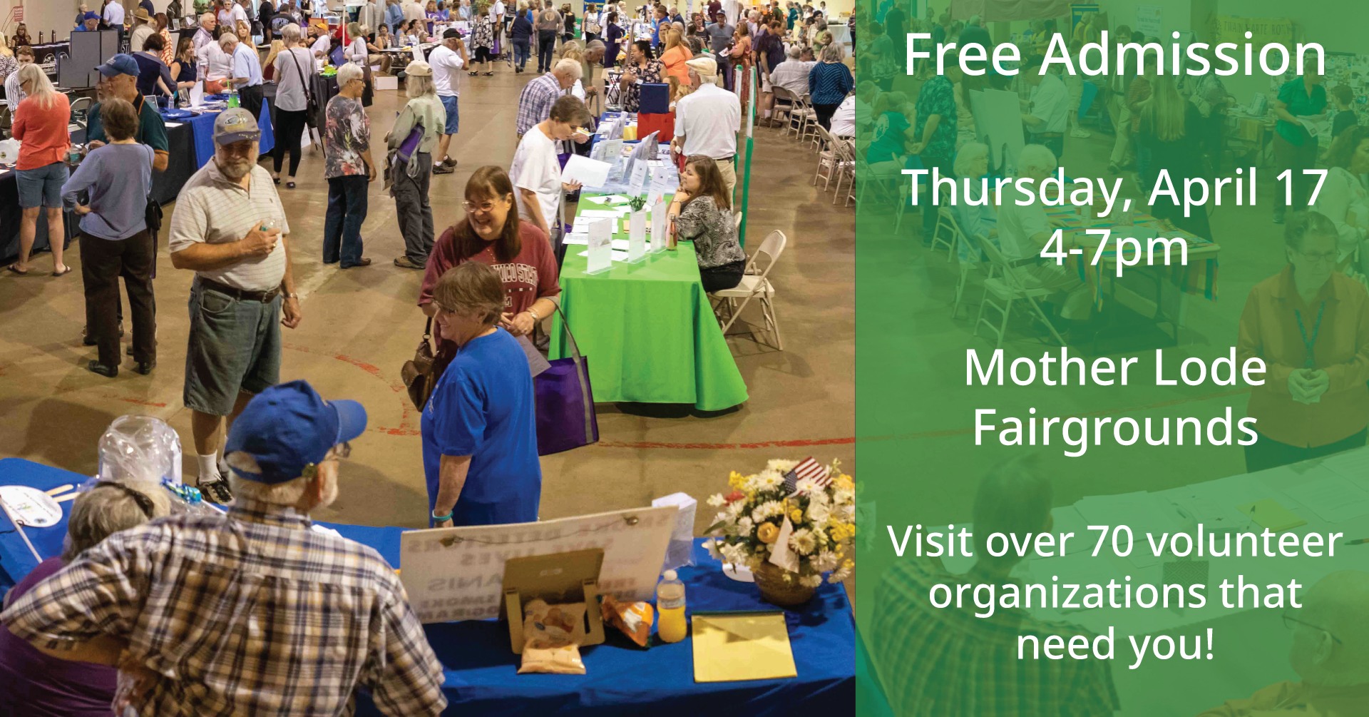 Join us at the 2025 Tuolumne County Volunteer Fair, Thursday, April 17, 2025 from 4-7 at the Motherlode Fairgrounds. Put this on your calendar now.